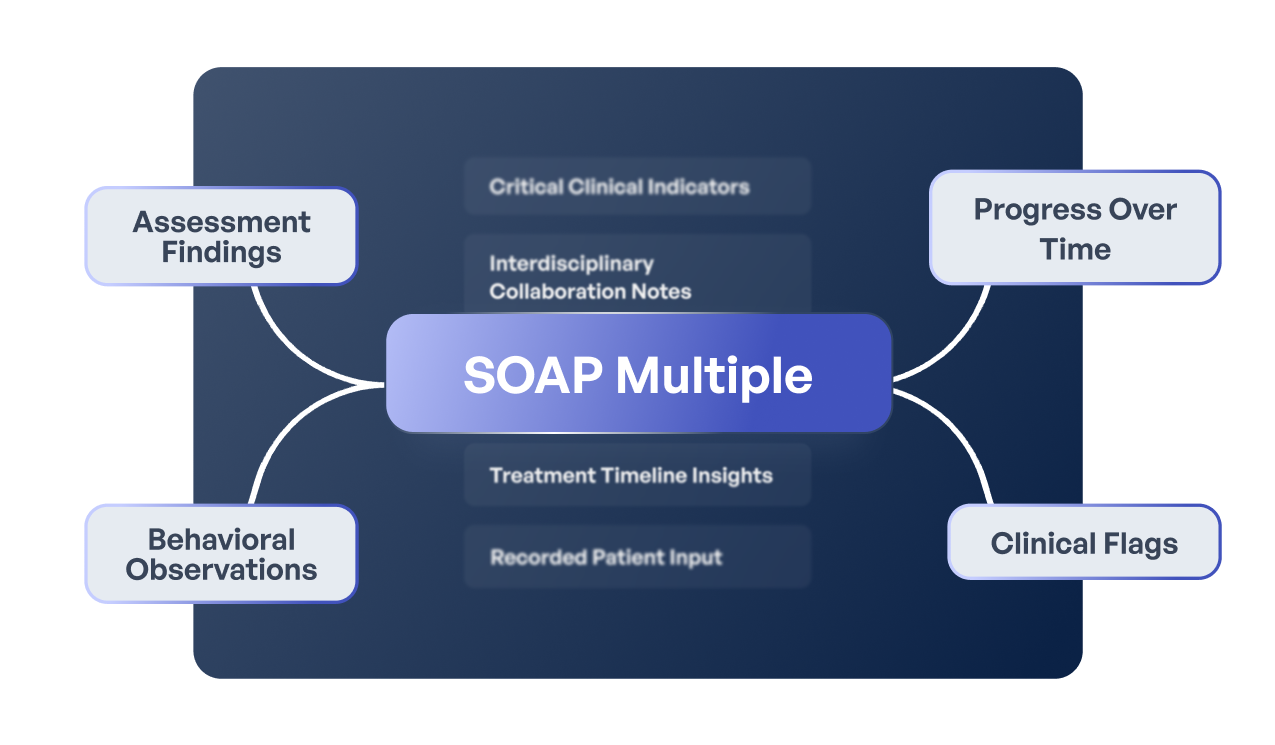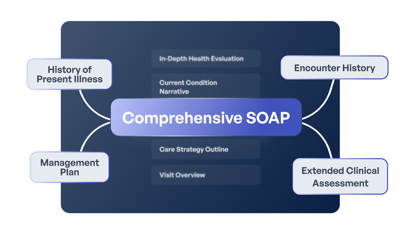 Designed for managing complex cases, this feature lets you document multiple patient concerns within a single, organised SOAP note. Capture rich subjective and objective data, conduct thorough assessments, and outline clear, structured plans. Ideal for clinicians handling multifaceted health issues, it streamlines documentation and supports more coordinated, high-quality care.